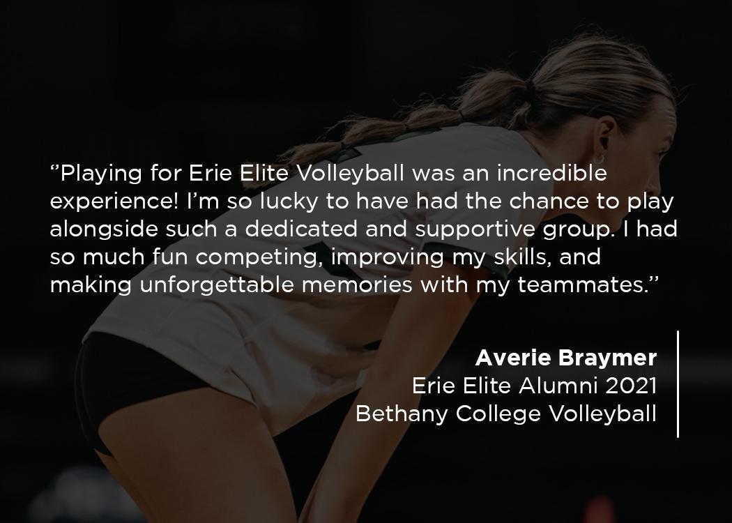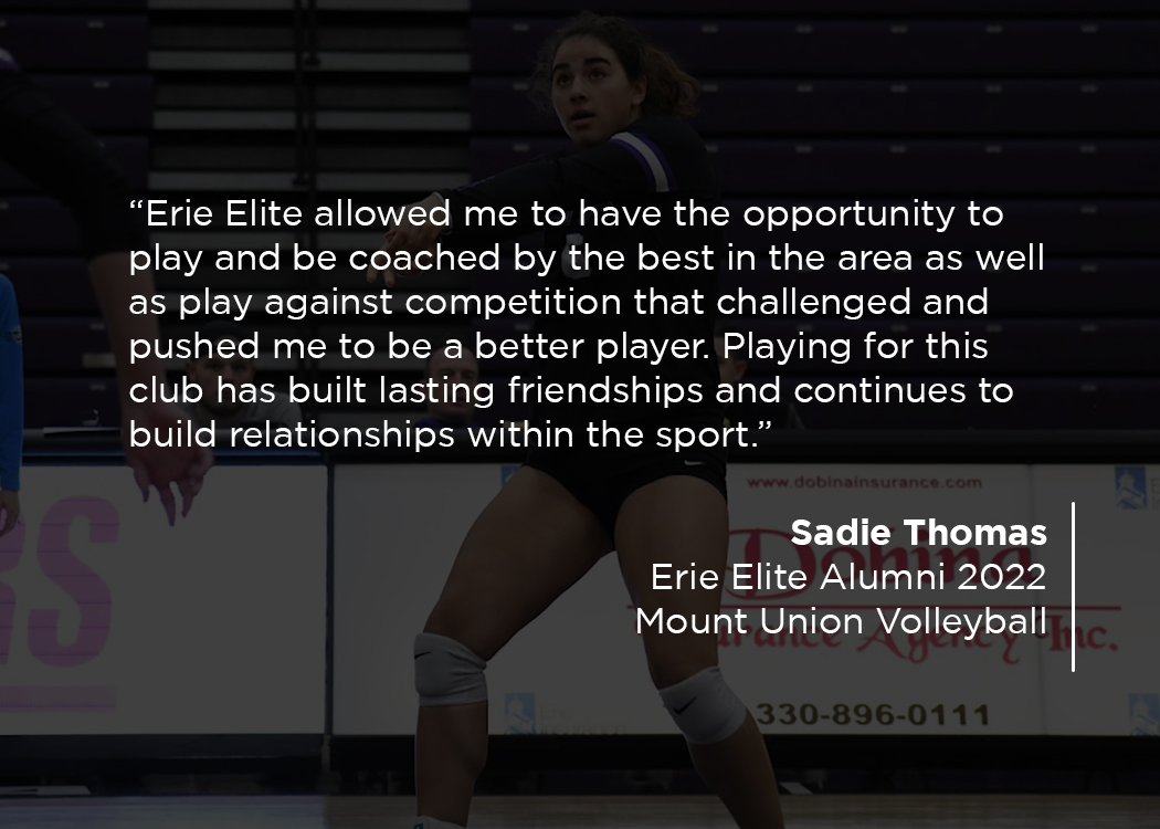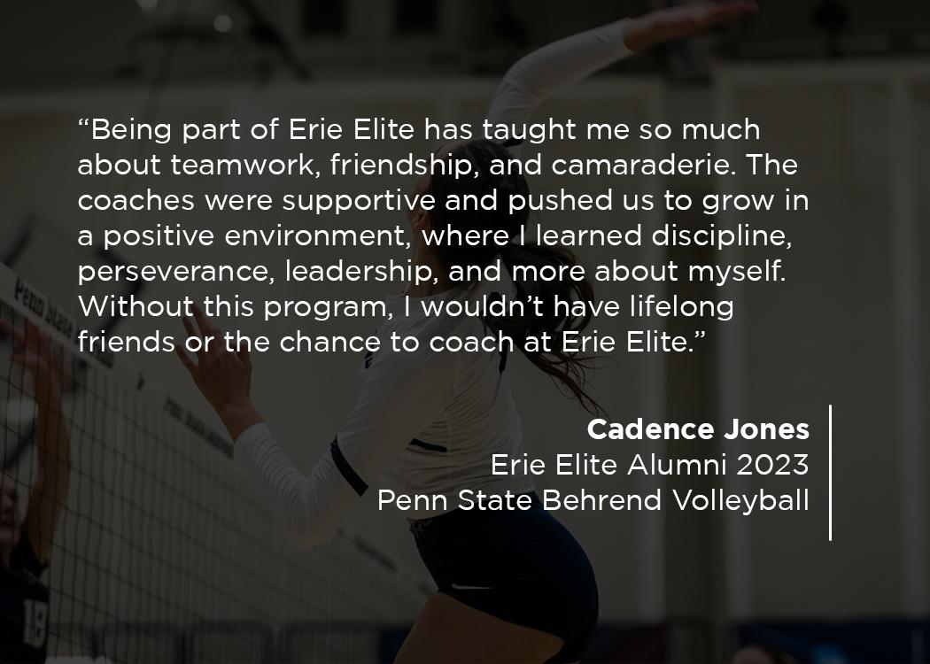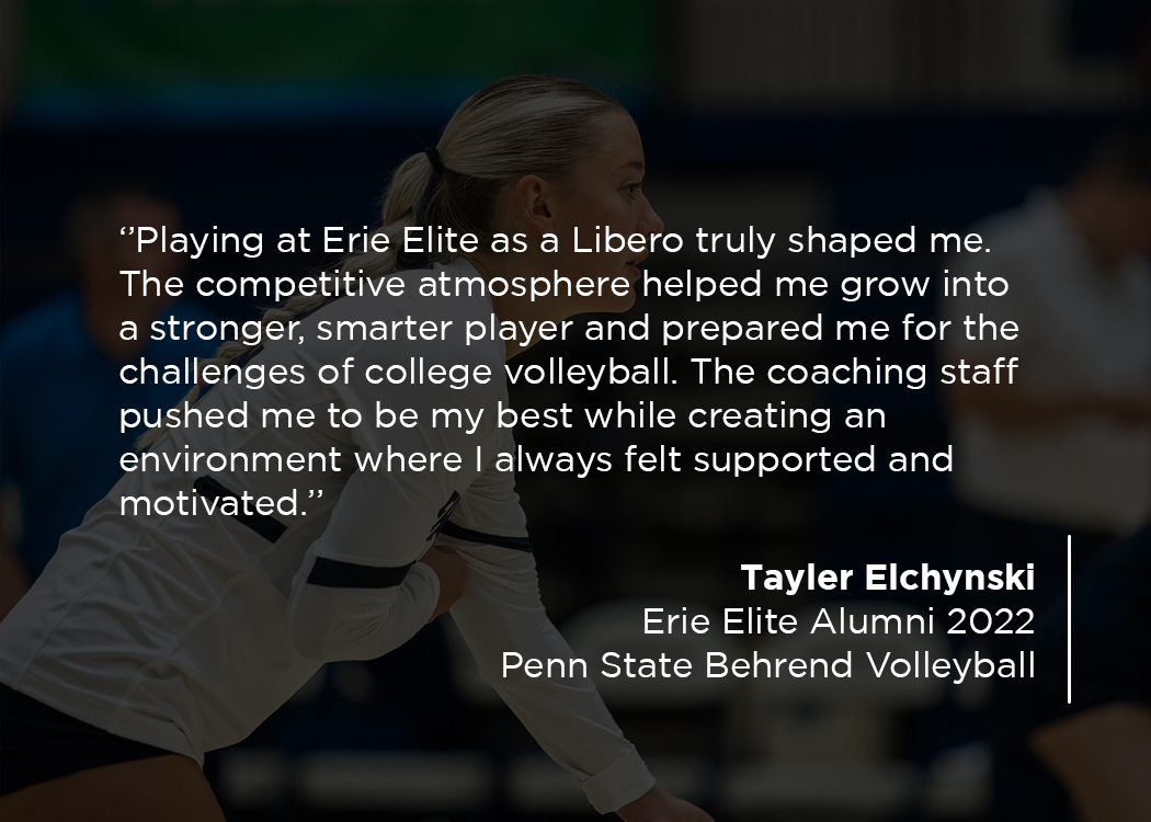Hear from our players—past and present—about how Erie Elite Performance Volleyball Club has help shape their game, their character, and their lifelong friendships formed throughout their time at Erie Elite.